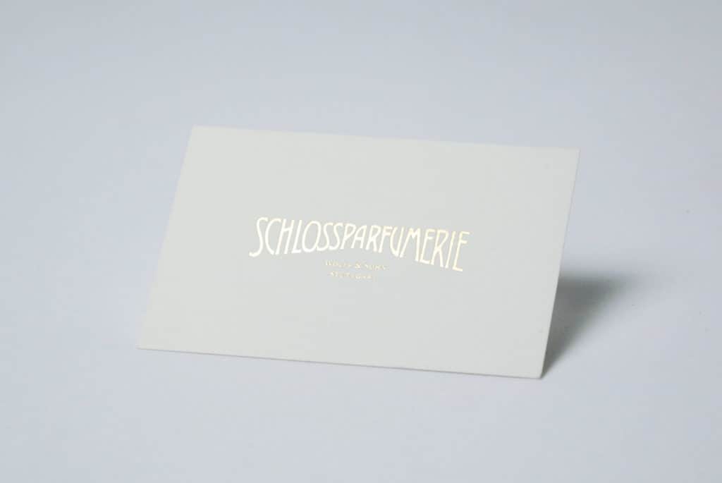 Die Geschäftsausstattung und Probenverpackungen für die Schlossparfumerie in Stuttgart zeichnen sich durch ihre prunkvollen grafischewn Elementen in Goldfolienprägung aus. Wir haben hier auf fein abgestimmte Details geachtet, um jede Berührung, jeden Blick und jeden Duftmoment zu einrm besonderen Erlebnis zu machen.